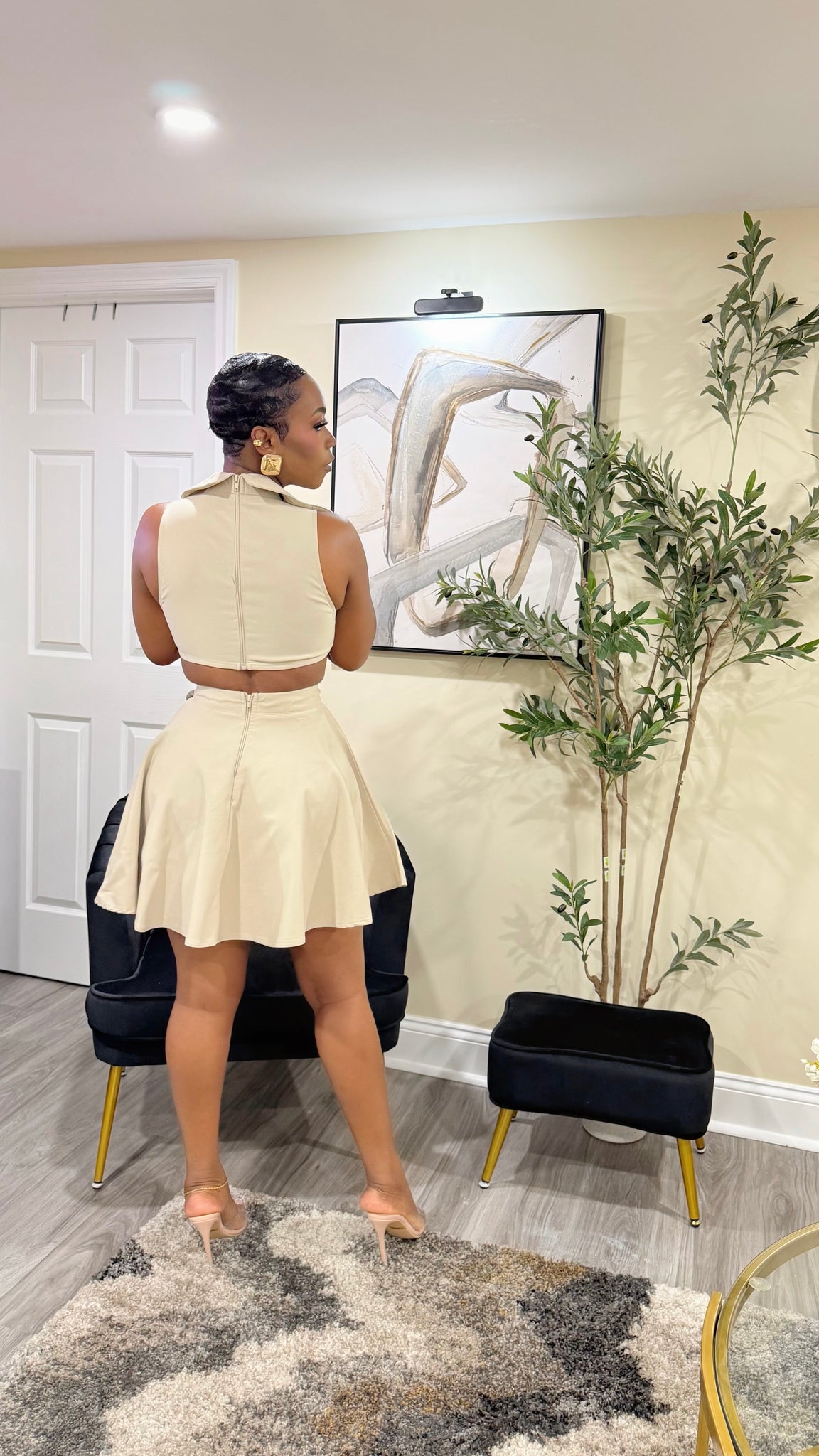 Sleeveless mini Cut-out Side Dress with Gold details to the front