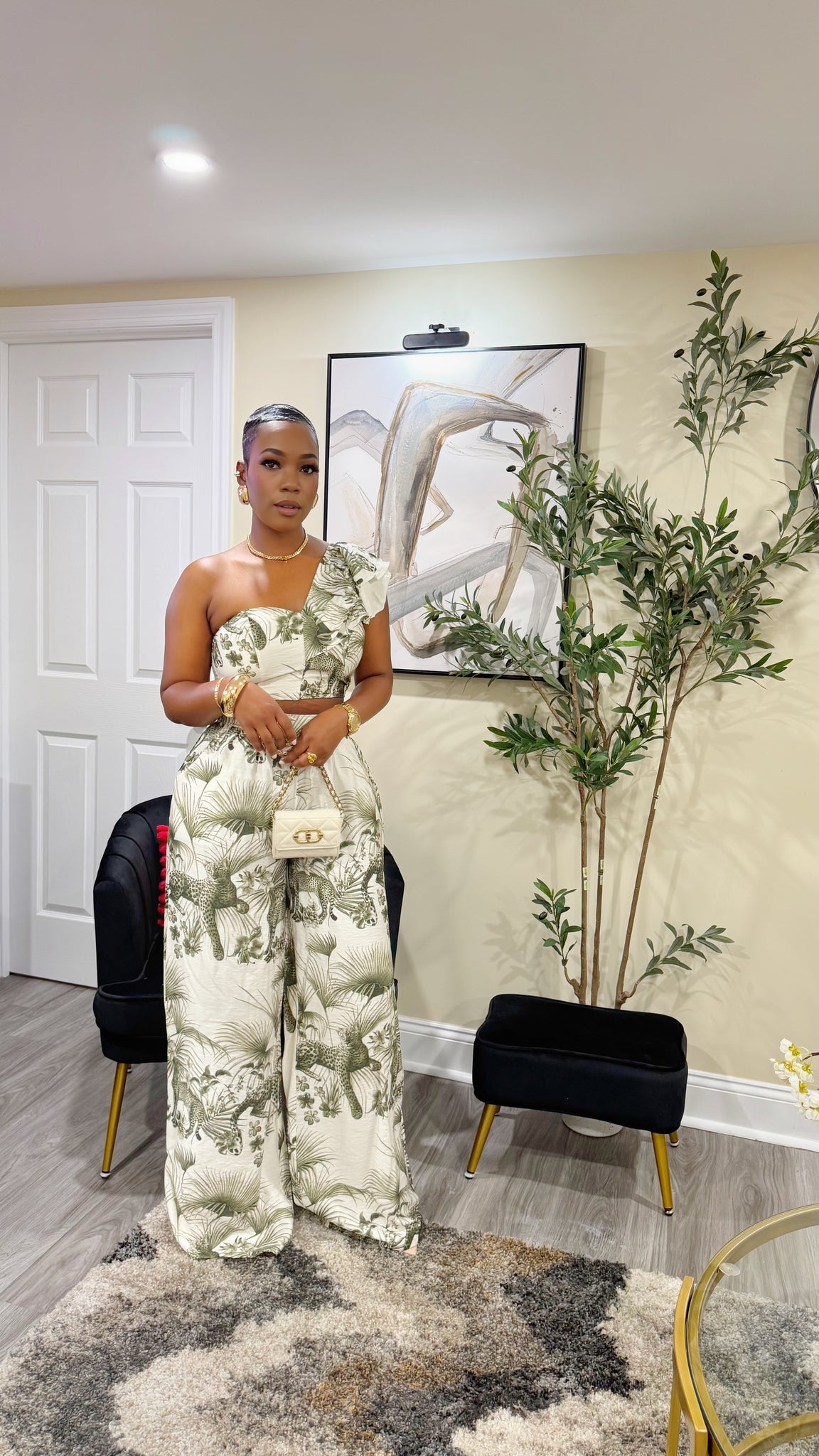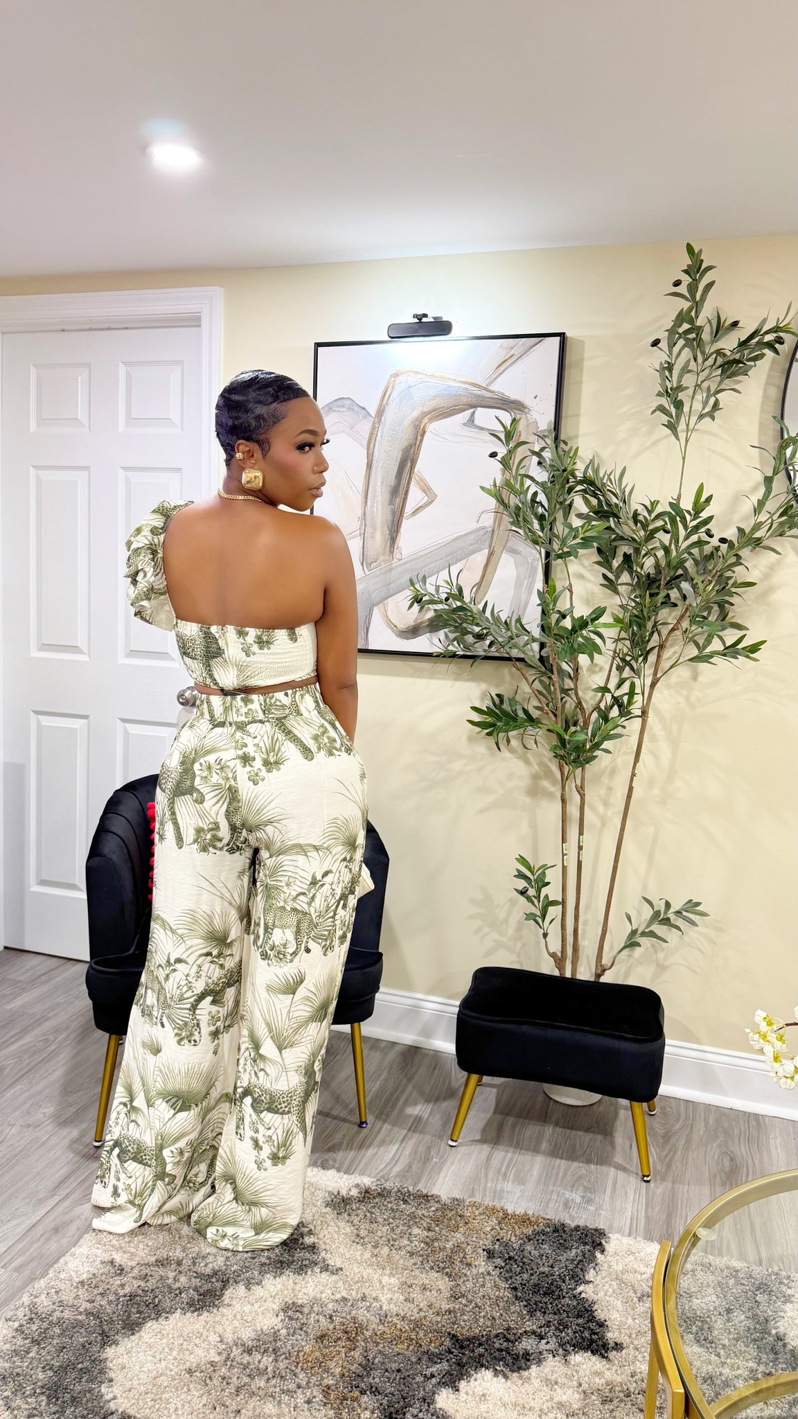 Safari Printed One shoulder Ruffled Crop Top with Matching Pants